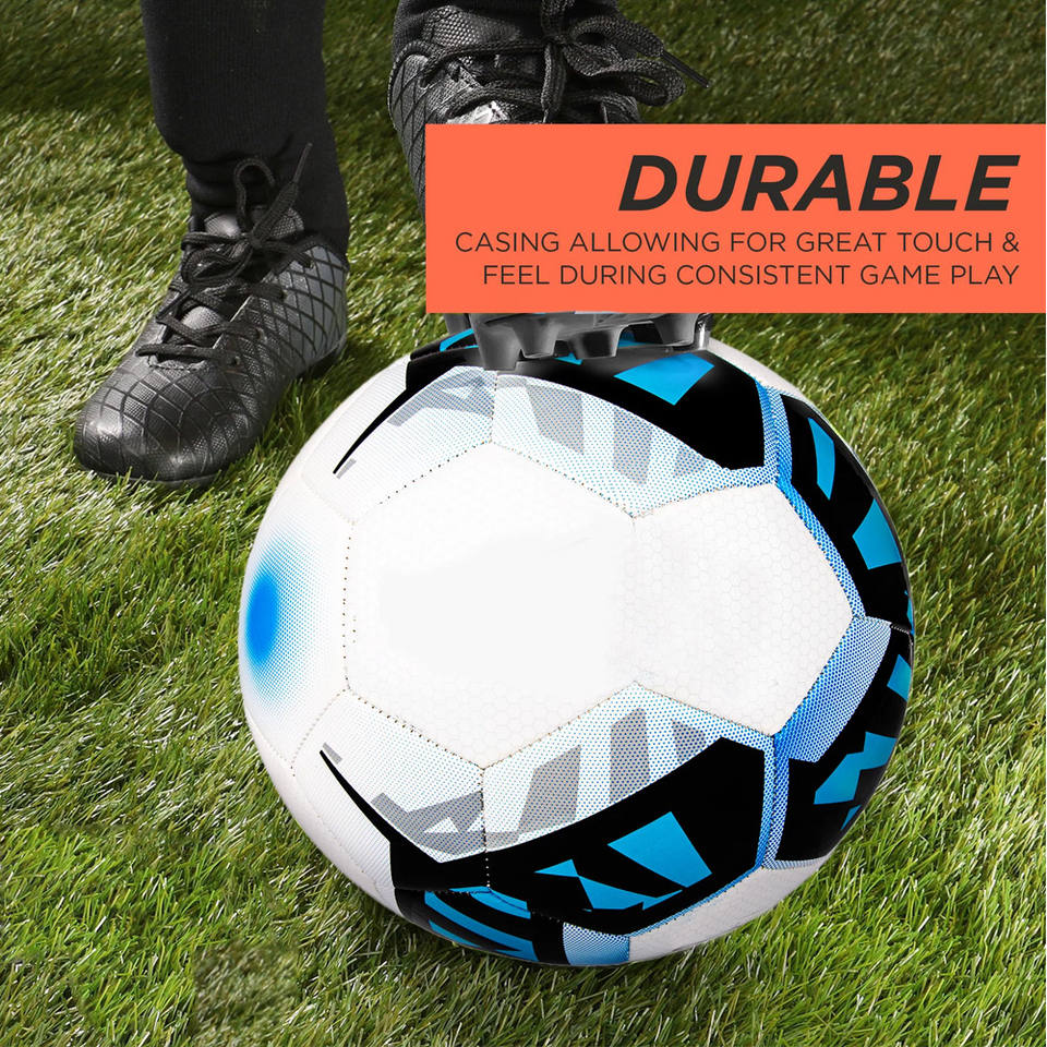 ลูกฟุตบอลหนัง PU คุณภาพสูง กันน้ำ สำหรับการแข่งขันและการฝึกซ้อม น้ำหนัก 400-450 กรัม มีจำหน่ายในขนาด 4 และ 5