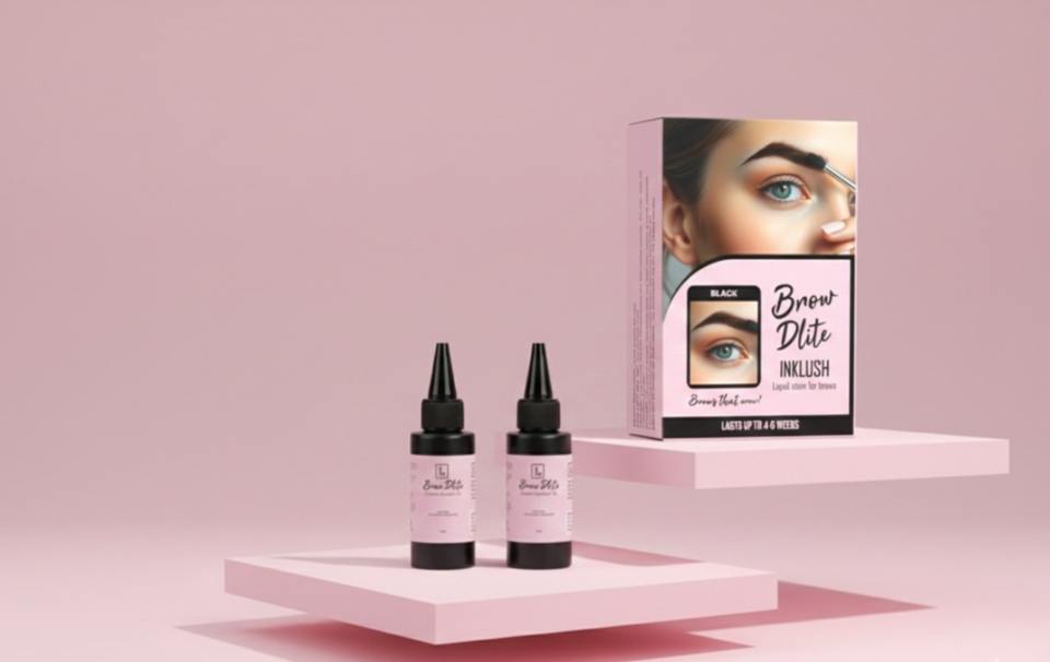 สีติดขนตาและคิ้วแบบกึ่งถาวร คุณภาพสูง กันน้ำ สูตรจากแร่ธาตุธรรมชาติ หัวปั๊มสองหัว แบบน้ำผสม รับผลิตฉลากสินค้าตามสั่ง