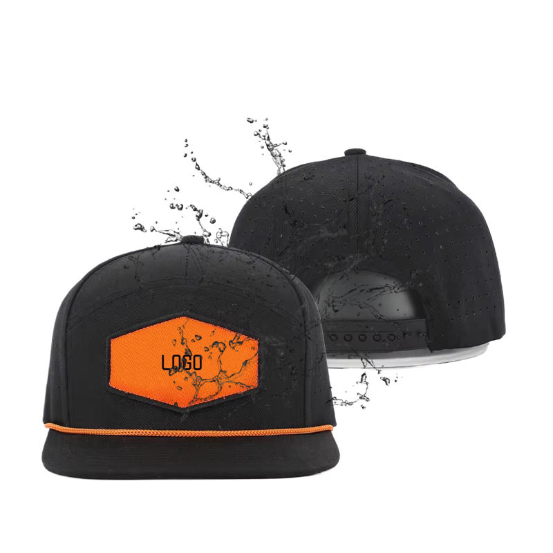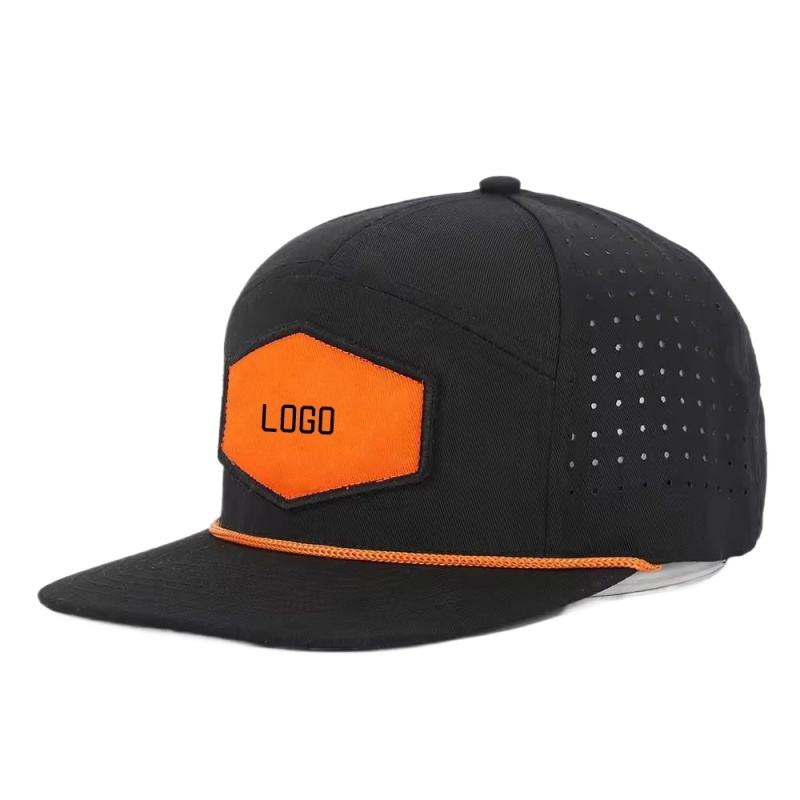 หมวกแก็ปปีกแบนกันน้ำมีรูระบายความร้อน, หมวกตาข่ายแห้งเร็ว7แผงหมวกกอล์ฟกลางแจ้งมีรูเลเซอร์หมวกสแนปแบ็กแบบลำลองสำหรับกีฬา