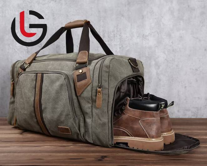 High Quality Waxed Cotton Canvas Duffel Bag for Men Casual Genuine Leather Large Capacity Durable Water Resistant Travel Bag