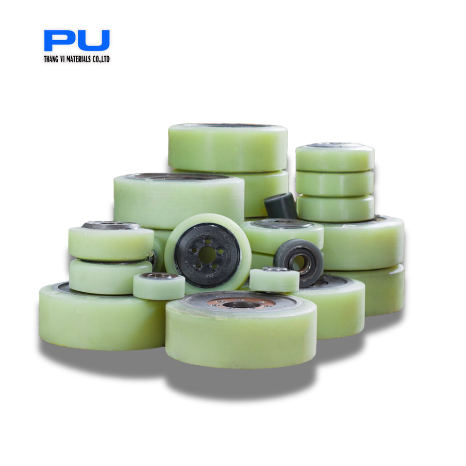ลูกปืนล้อรถยกโพลียูรีเทนแกนเหล็กทนทานต่อการสึกหรอสำหรับชิ้นส่วนรถยก