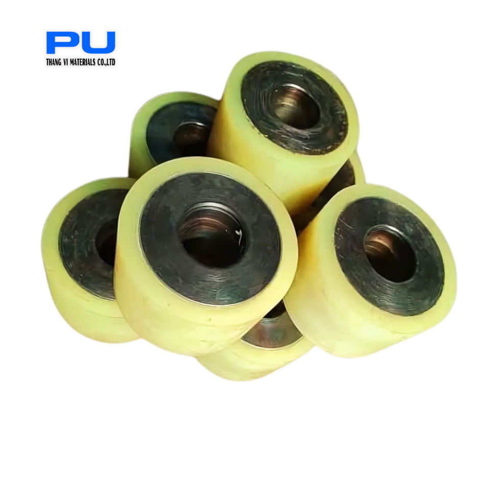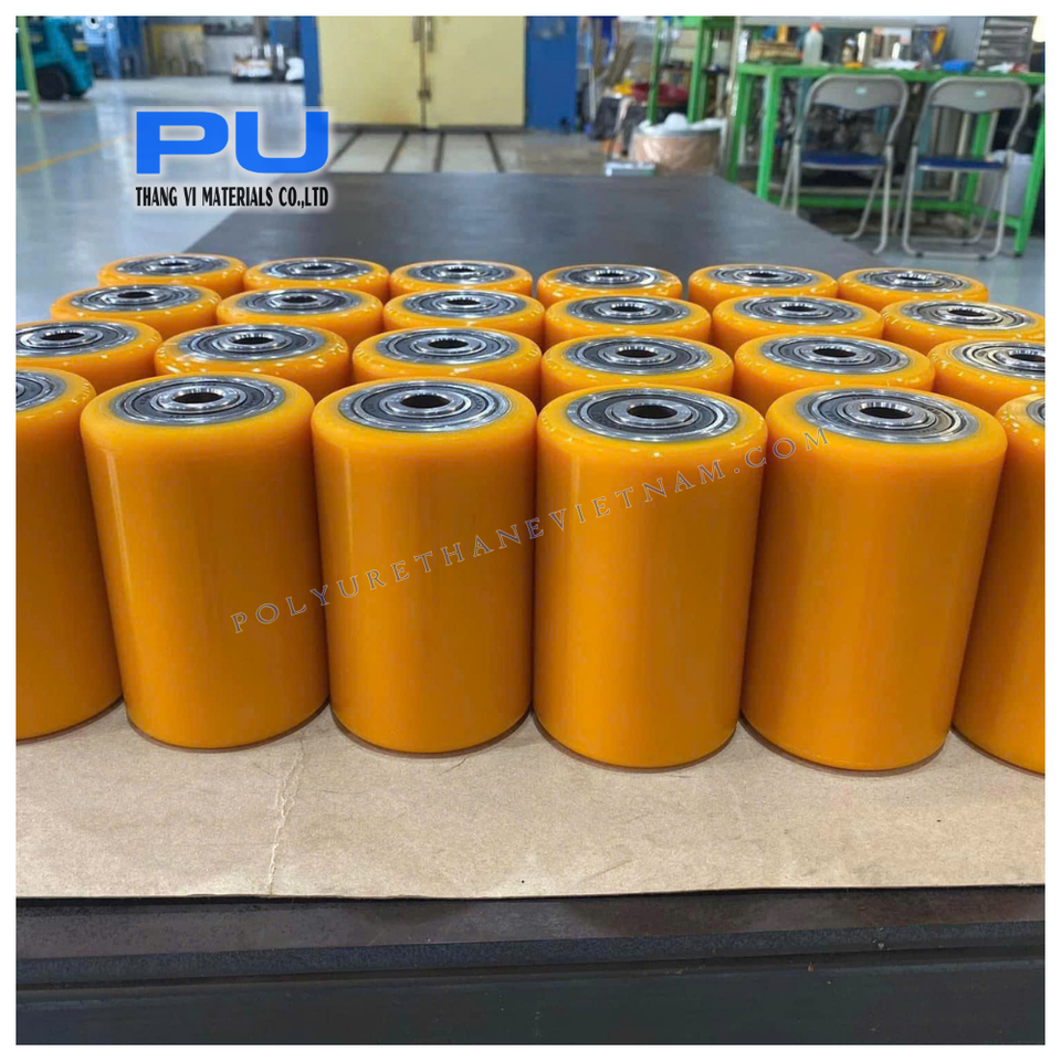 ลูกปืนล้อรถยกโพลียูรีเทนแกนเหล็กทนทานต่อการสึกหรอสภาพใหม่สำหรับชิ้นส่วนรถยก