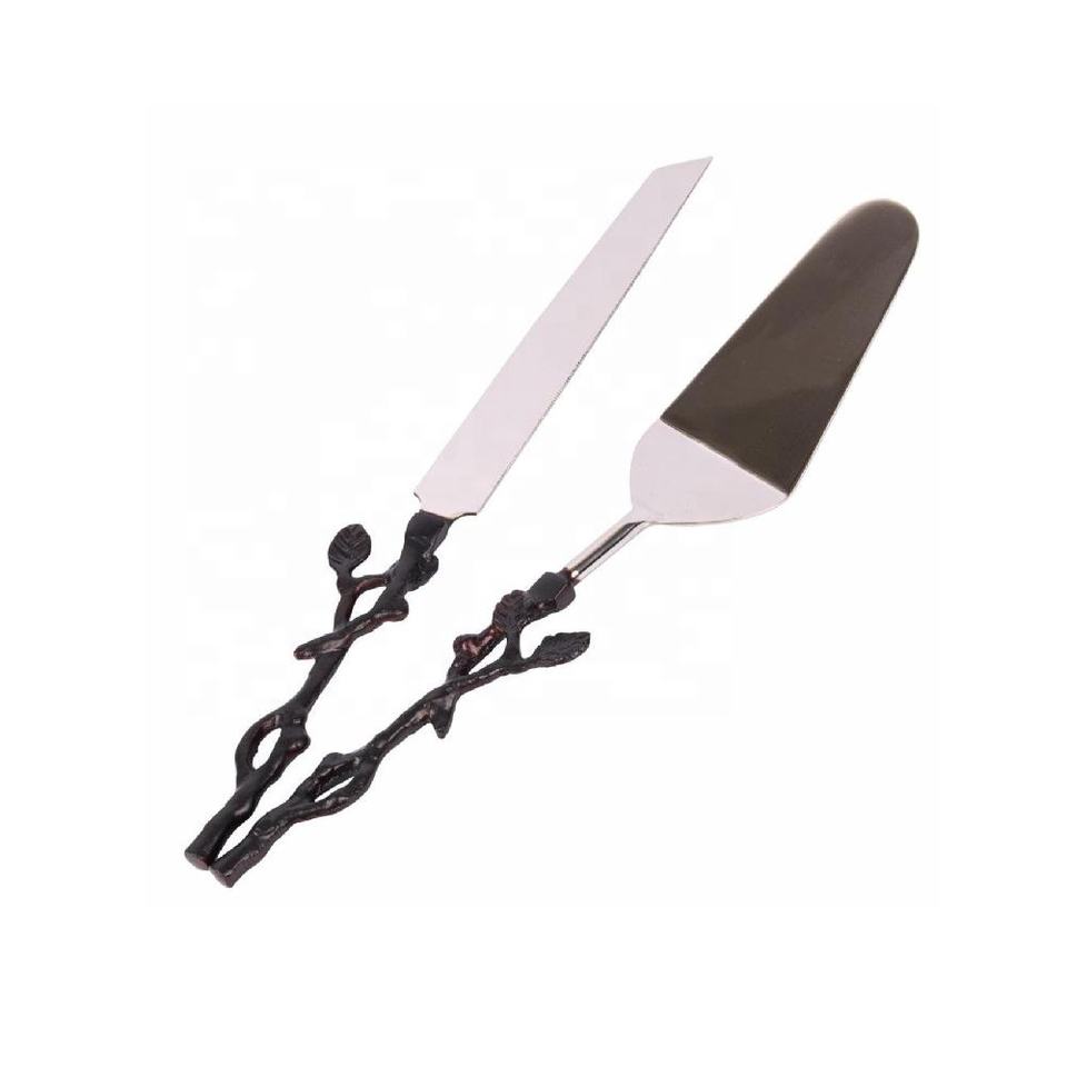 ที่เสิร์ฟเค้กด้ามสานทำจากเหล็กพร้อมกระจกขัดเงาอุปกรณ์ตัดเค้กเครื่องมือทำเค้กเสร็จเค้กจากอินเดีย