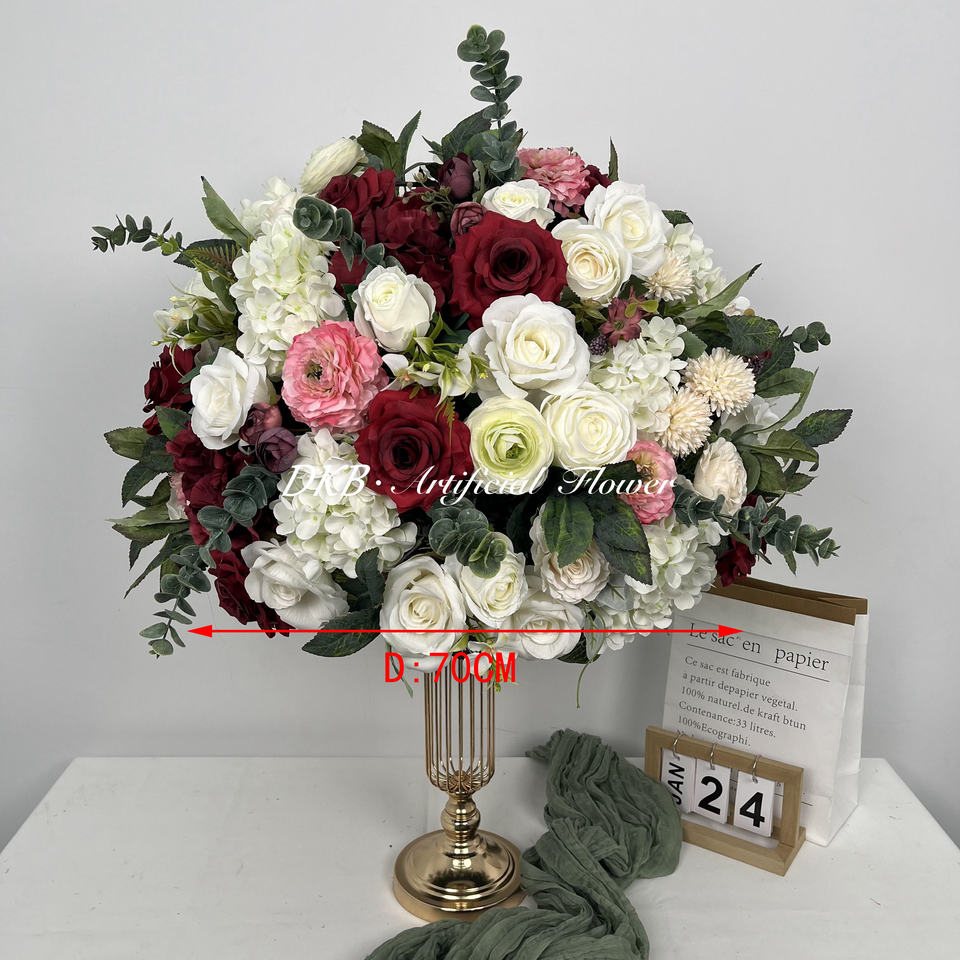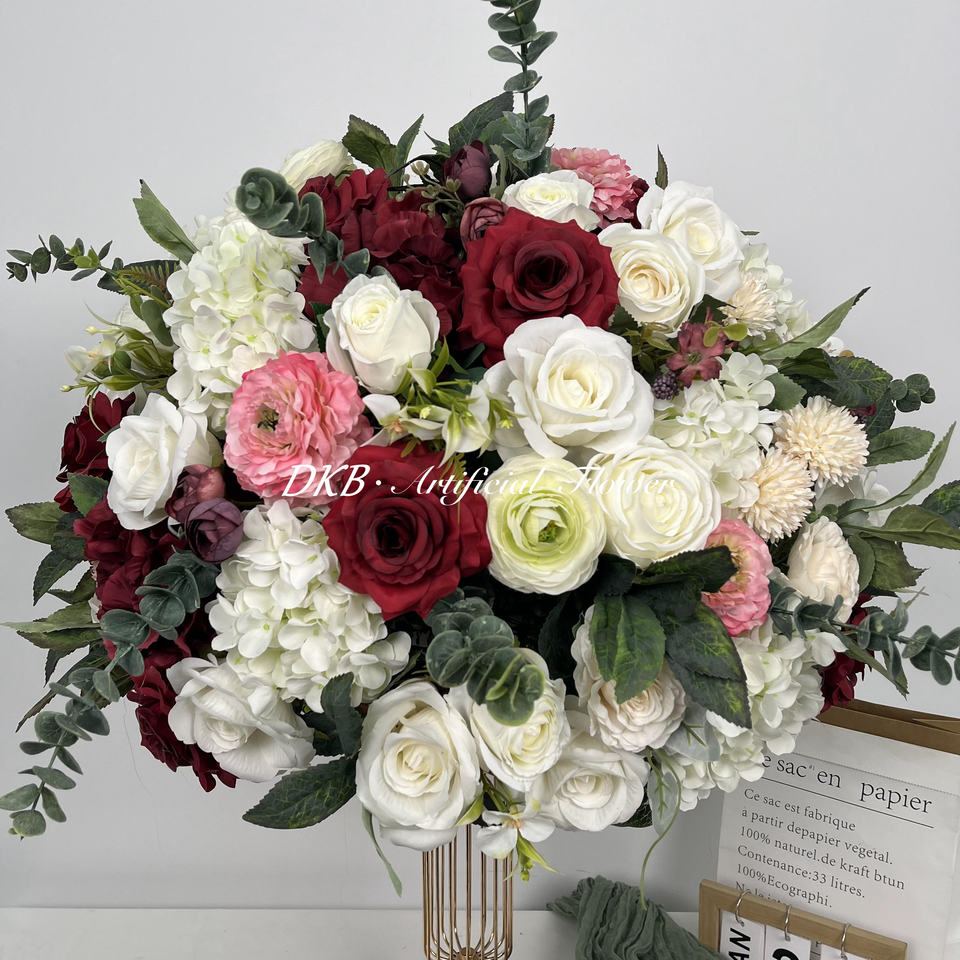 คีย์เวิร์ดของผลิตภัณฑ์:ลูกบอลดอกไม้ประดิษฐ์สำหรับตกแต่งโต๊ะในงานแต่งงานลูกบอลทำจากผ้าไหม