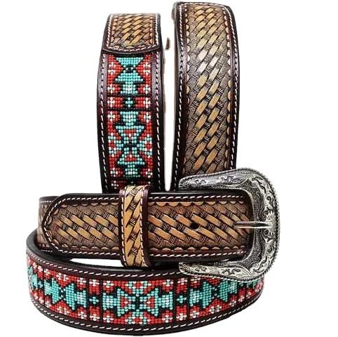 คุณภาพสูงหนังตะวันตกเข็มขัดลูกปัด Handtooled ผู้ชายผู้หญิง unisex ในราคาที่ดีที่สุดที่