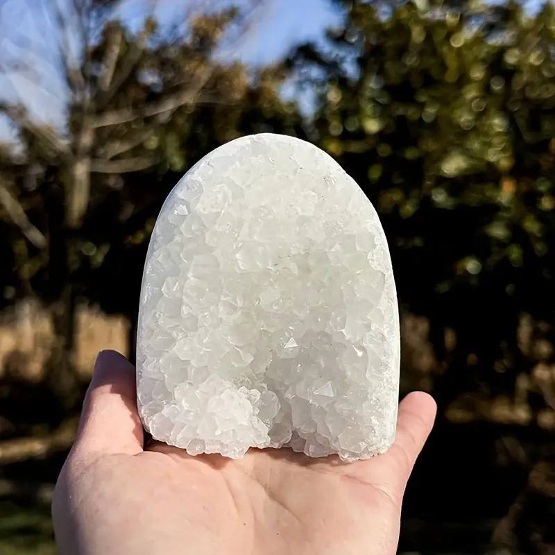 หินอาเกตสีขาวคุณภาพสูง ดรูซี่จีโอด คริสตัลอเมทิสต์ธรรมชาติ สำหรับตกแต่ง