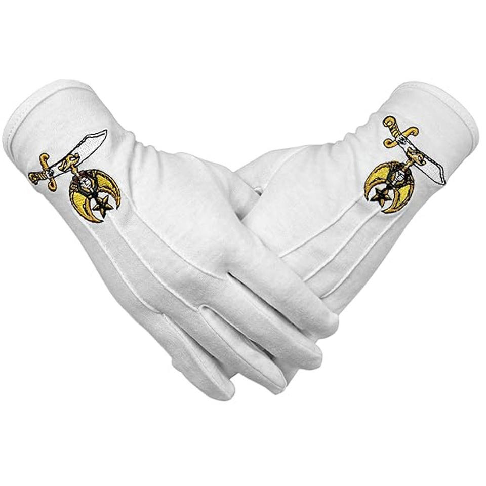 ถุงมือพิธีกรรมสำหรับสมาคมพี่น้อง ทำจากผ้าฝ้ายสีขาวคุณภาพสูง สำหรับชุดพิธีการ ให้ความรู้สึกสบายมือและนุ่มนวล