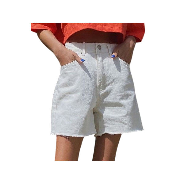 กางเกงขาสั้นผ้าฝ้ายสีขาวสำหรับผู้หญิงและผู้หญิงมีกระดุมปิดกระเป๋าด้านหน้าและกระเป๋าหลังปรับแต่งได้
