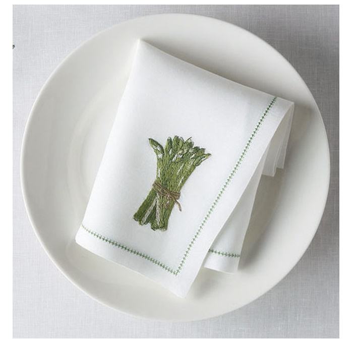 ชุดตกแต่งโต๊ะผ้าฝ้ายสีขาวคุณภาพสูงผ้าเช็ดปากที่รองจานลายหน่อไม้ฝรั่งงานปักตามสั่งสำหรับบ้านห้องครัวโรงแรม