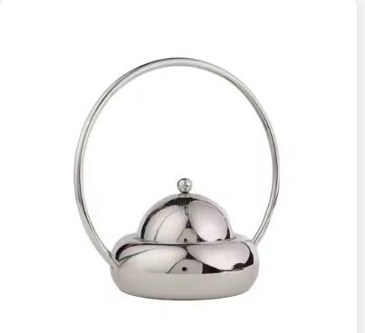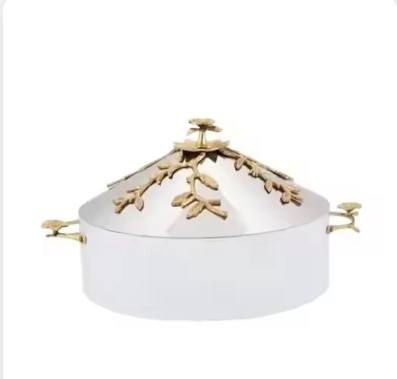 หม้อโลหะสีขาวพร้อมฝาปิดด้านบนเป็นที่จับตามองสำหรับตกแต่งร้านอาหารโรงแรม