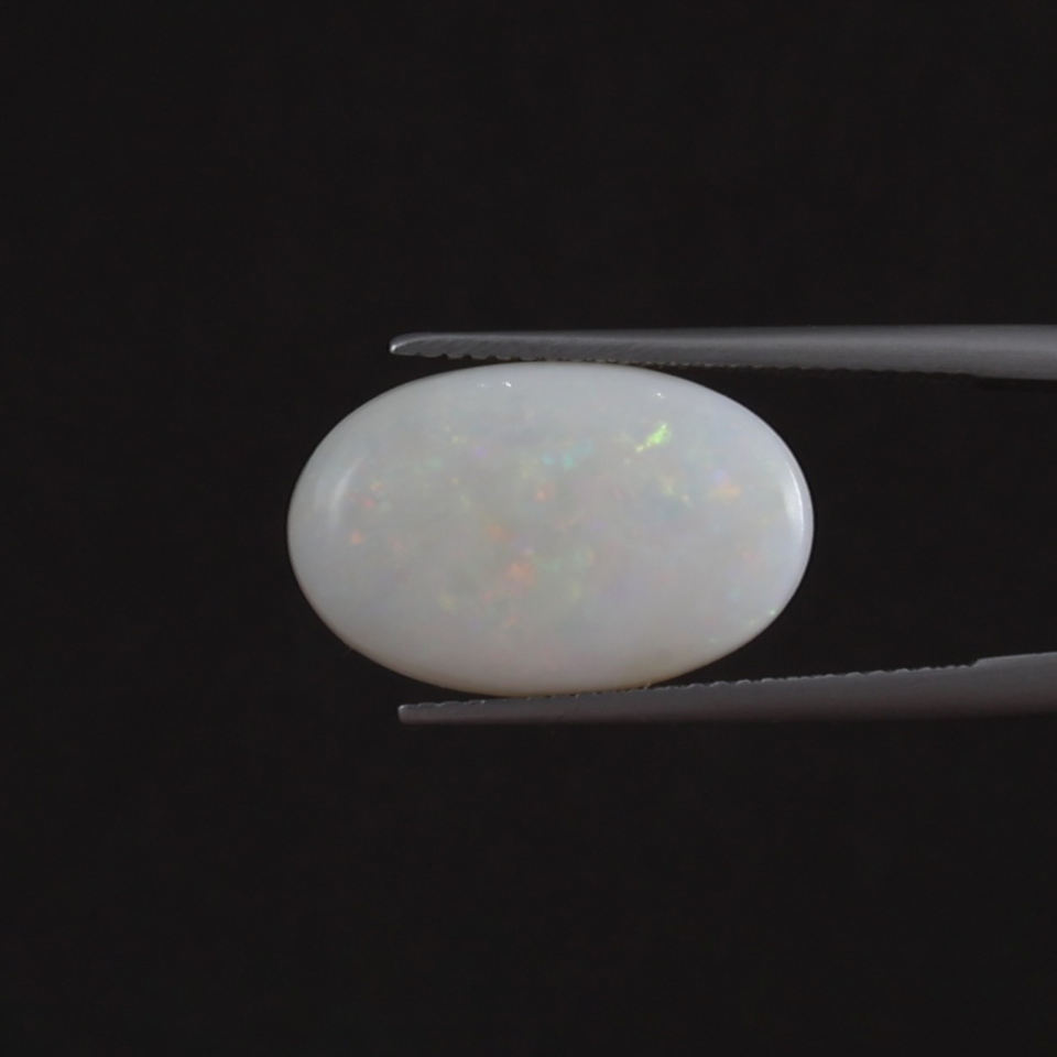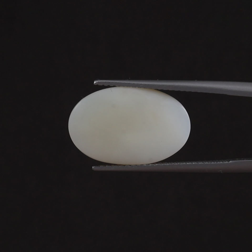 โอปอลสีขาวธรรมชาติคุณภาพสูง รับรองโดย IGI พลอยเม็ดเดี่ยว 5.92 กะรัต รูปไข่ 18.5x12 มม. ตัดด้วยมือ ขัดเงา ผ่านการเคลือบด้วยแว็กซ์/น้ำมัน