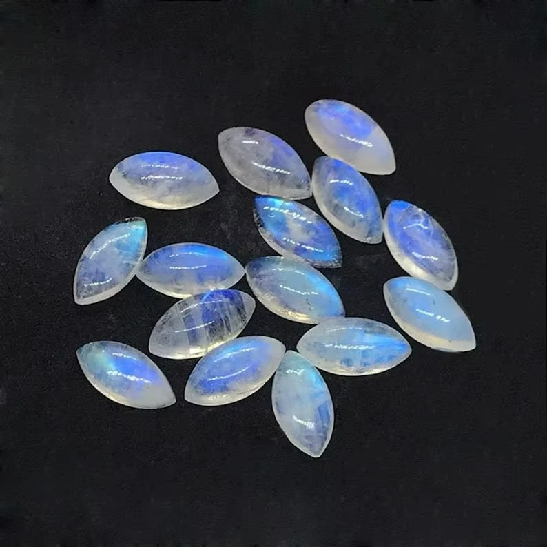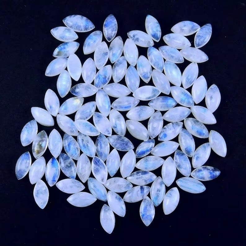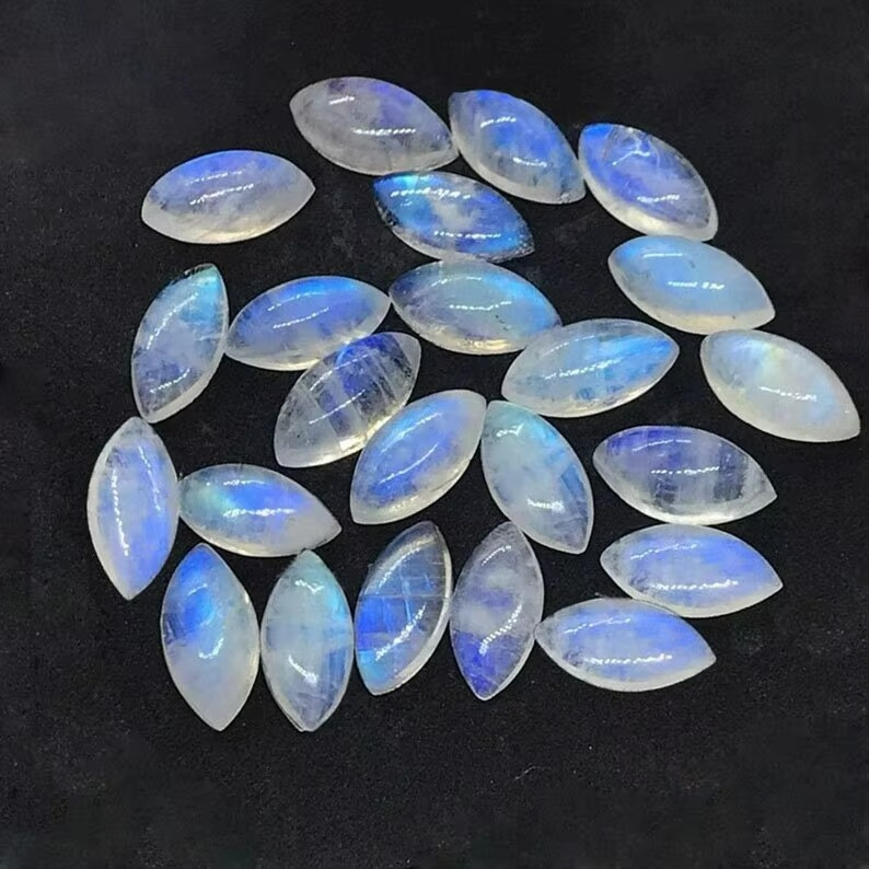 หินมูนสโตนสีรุ้งแบบขัดเงามีหลายขนาดสำหรับทำเครื่องประดับ