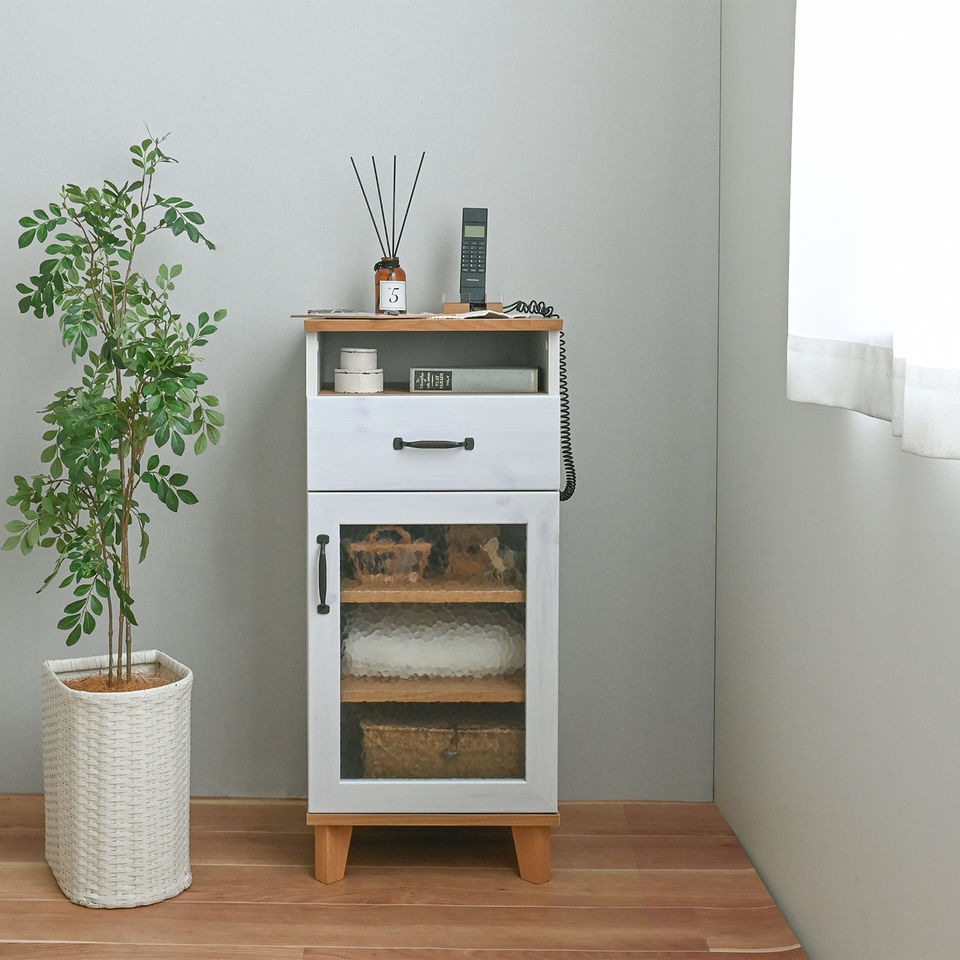 รถเข็นขนาดเล็กลายไม้สีขาวน่ารักพร้อมไม้ยางพาราและขาไม้สน