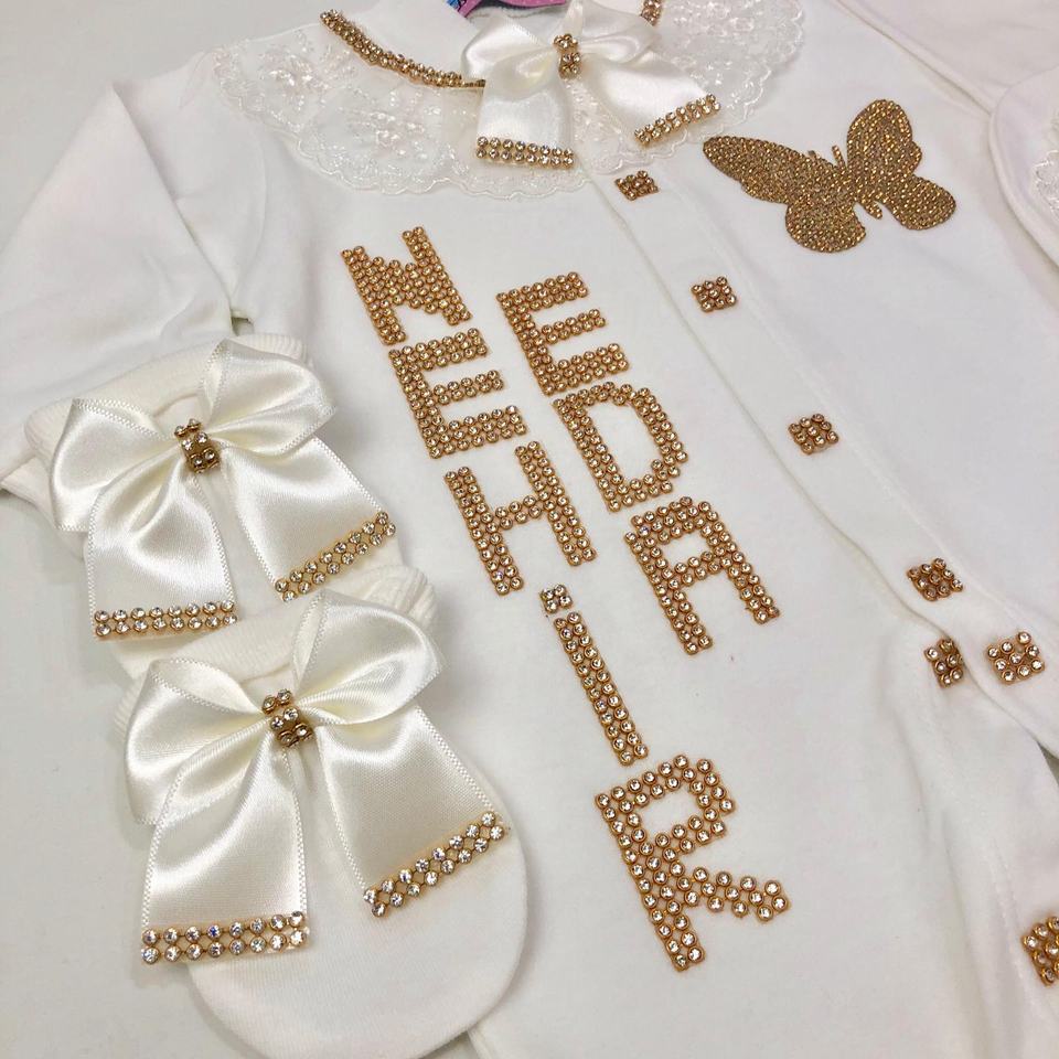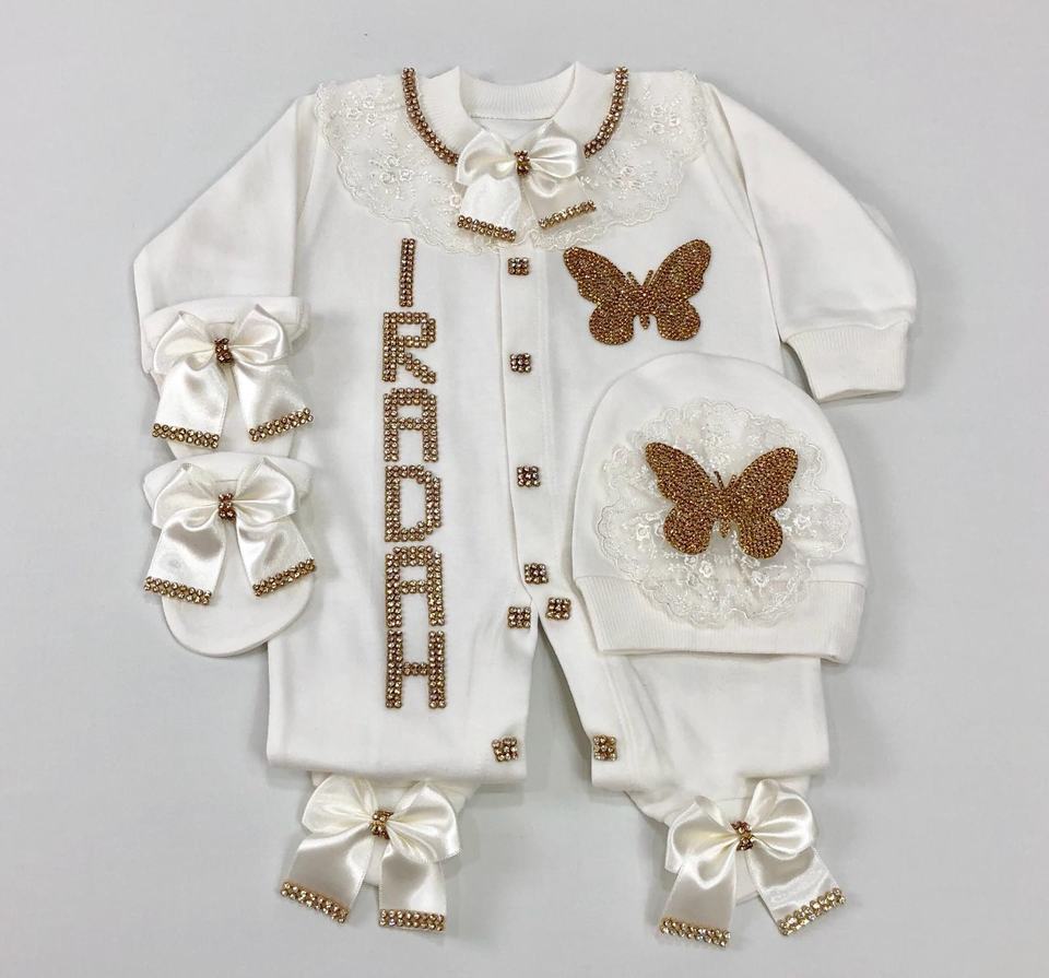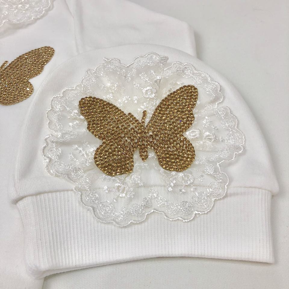 ชุดรอมเปอร์เด็กผู้หญิงผ้าฝ้ายถักคุณภาพสูง 100% แขนยาว ติดกระดุม ปักลายผีเสื้อ รับผลิตตามแบบ