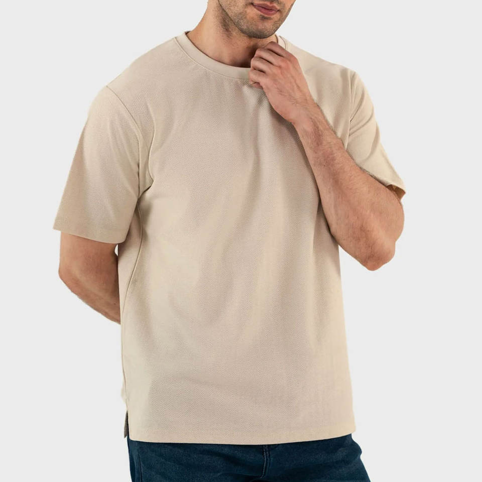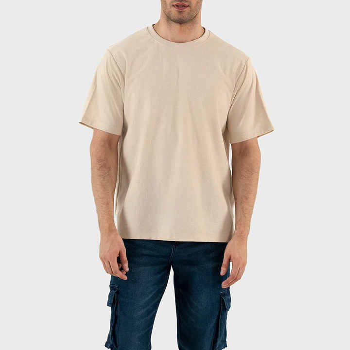 เสื้อยืดผู้ชายคุณภาพสูงแบบขายส่ง ผ้าวอร์สเตด พิมพ์โลโก้ตามสั่ง ทรงโอเวอร์ไซส์ แขนสั้น เสื้อยืดเรียบ