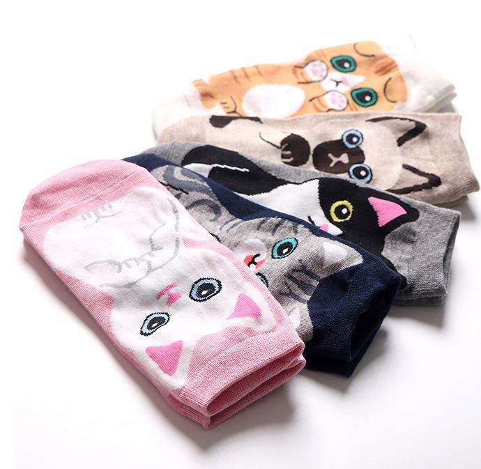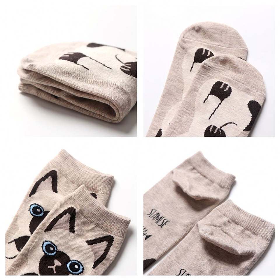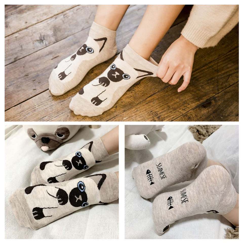 ถุงเท้าข้อสั้นผ้าฝ้ายลายสัตว์แจ็คการ์ดสุดน่ารัก สำหรับผู้หญิง
