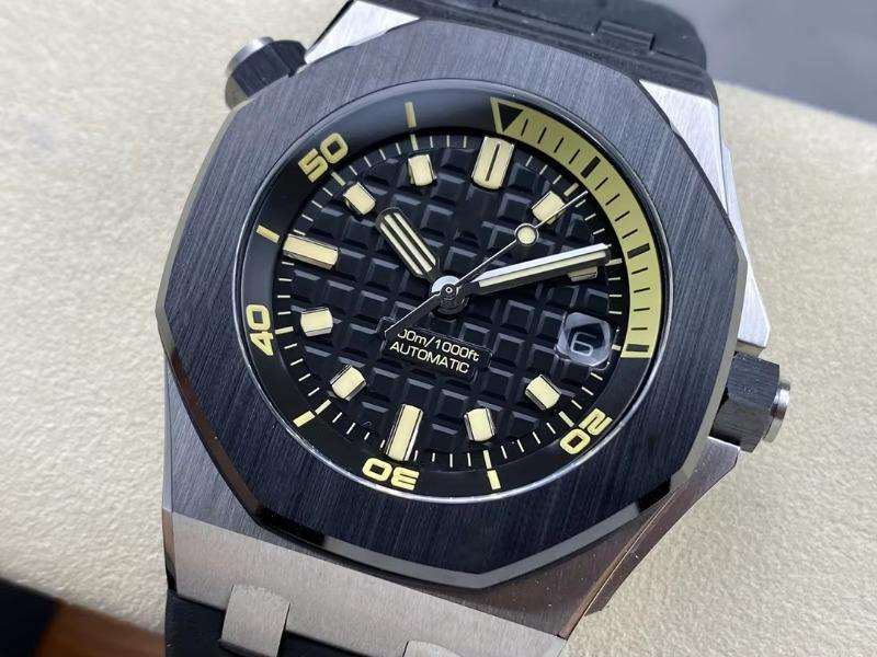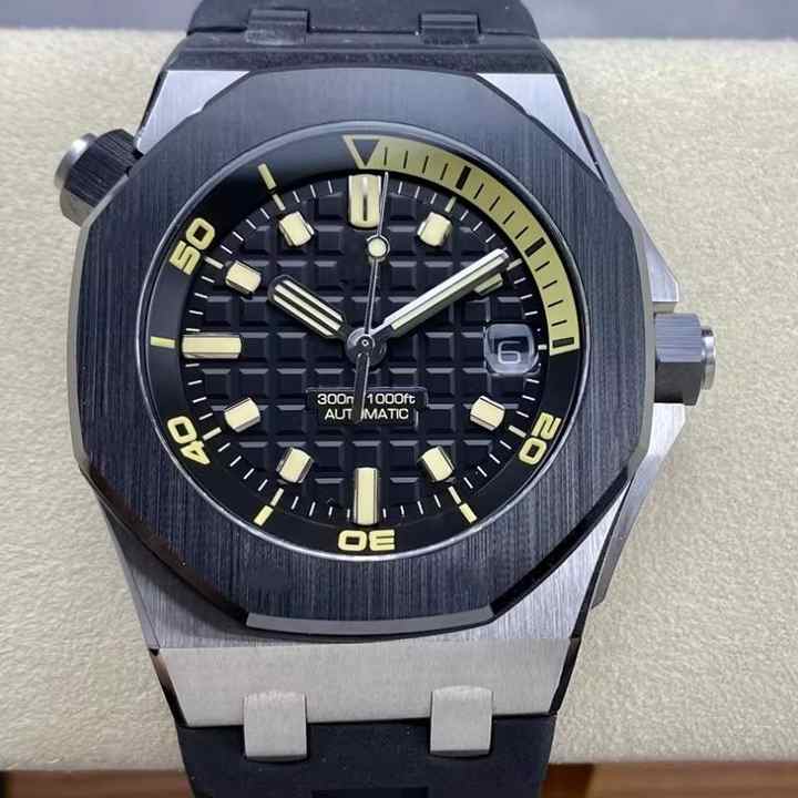 นาฬิกาดำน้ำคุณภาพสูงแบบขายส่ง ระบบอัตโนมัติ หน้าปัด 42 มม. กลไก 4308 รุ่น 15720 ขอบเซรามิกสีดำ