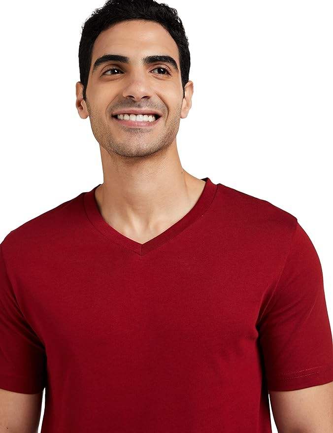 เสื้อยืดผู้ชายคอวีแขนสั้นเรียบๆคอวี