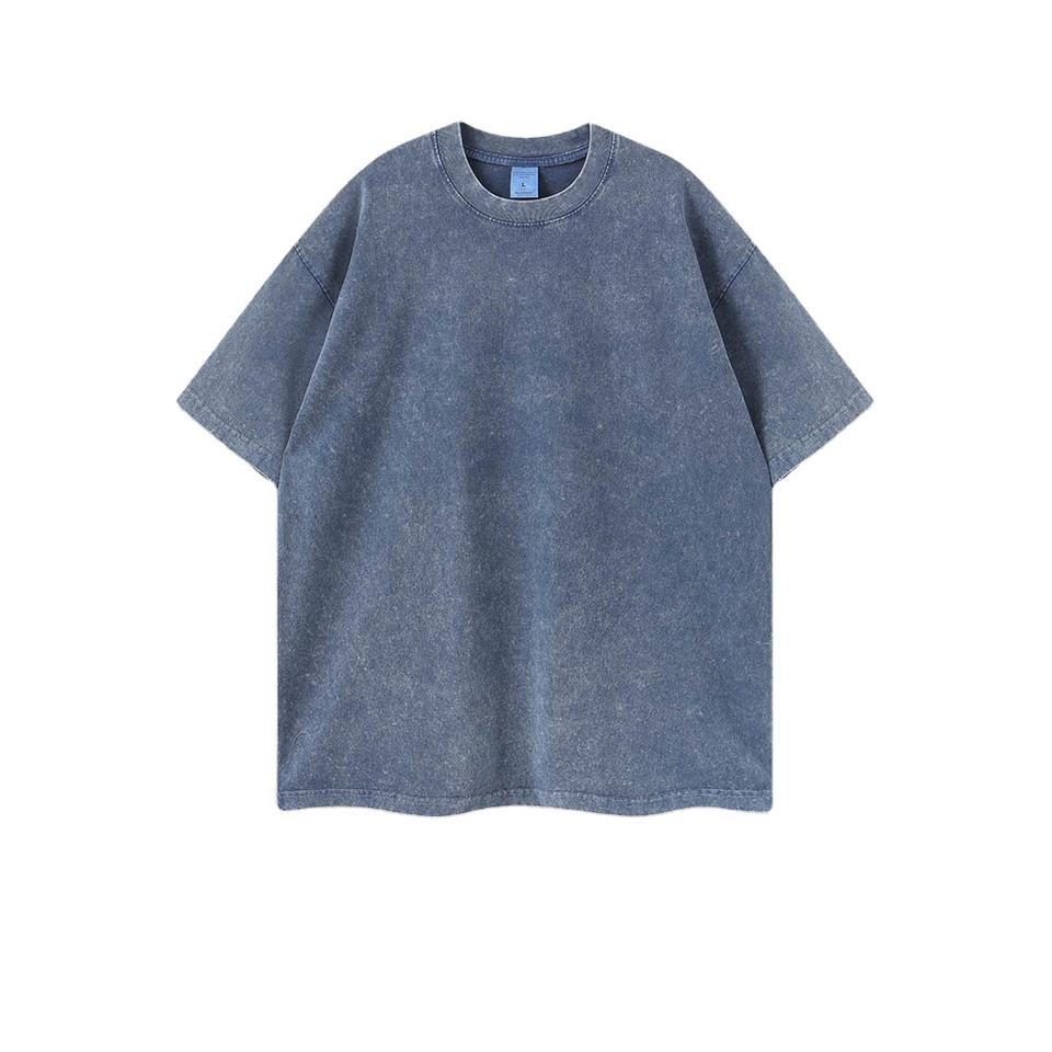 เสื้อยืดผู้ชายสะพายไหล่ปล่อยชายเสื้อลายกรดเฮฟวี่เวทผ้าฝ้าย