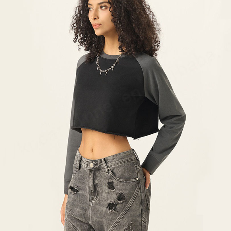 High Quality Wholesale Crew Neck 420 Gsm Raglan Sleeves Breathable StreetWear Oversized Boxy Fit Crop Top Ladies Women T-Shirt