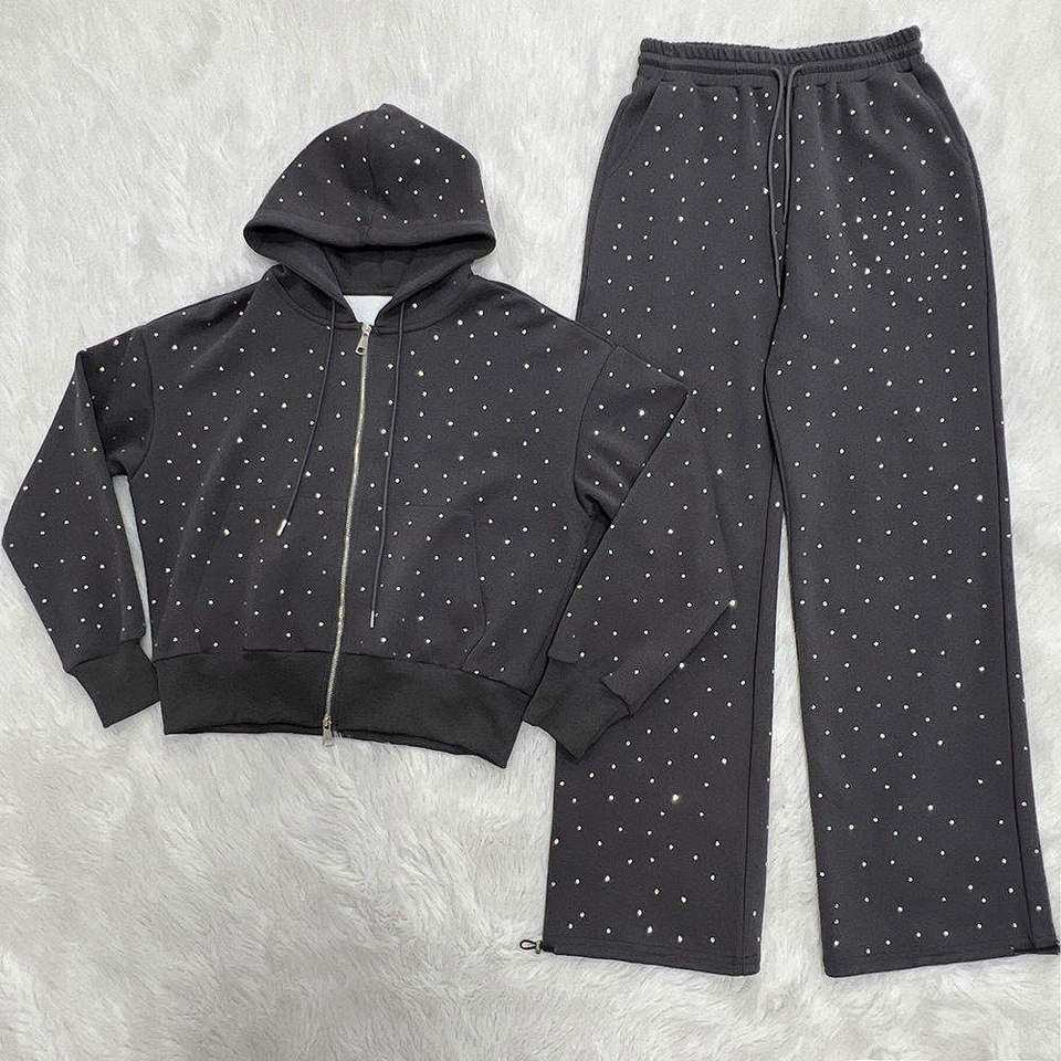 ชุดวอร์มมีฮู้ดผู้ชายแบบลำลอง ประดับคริสตัล คุณภาพสูง ขายส่ง แบบสั่งทำพิเศษ ทรงปกติ สไตล์ดิสเทรส สำหรับฤดูหนาว