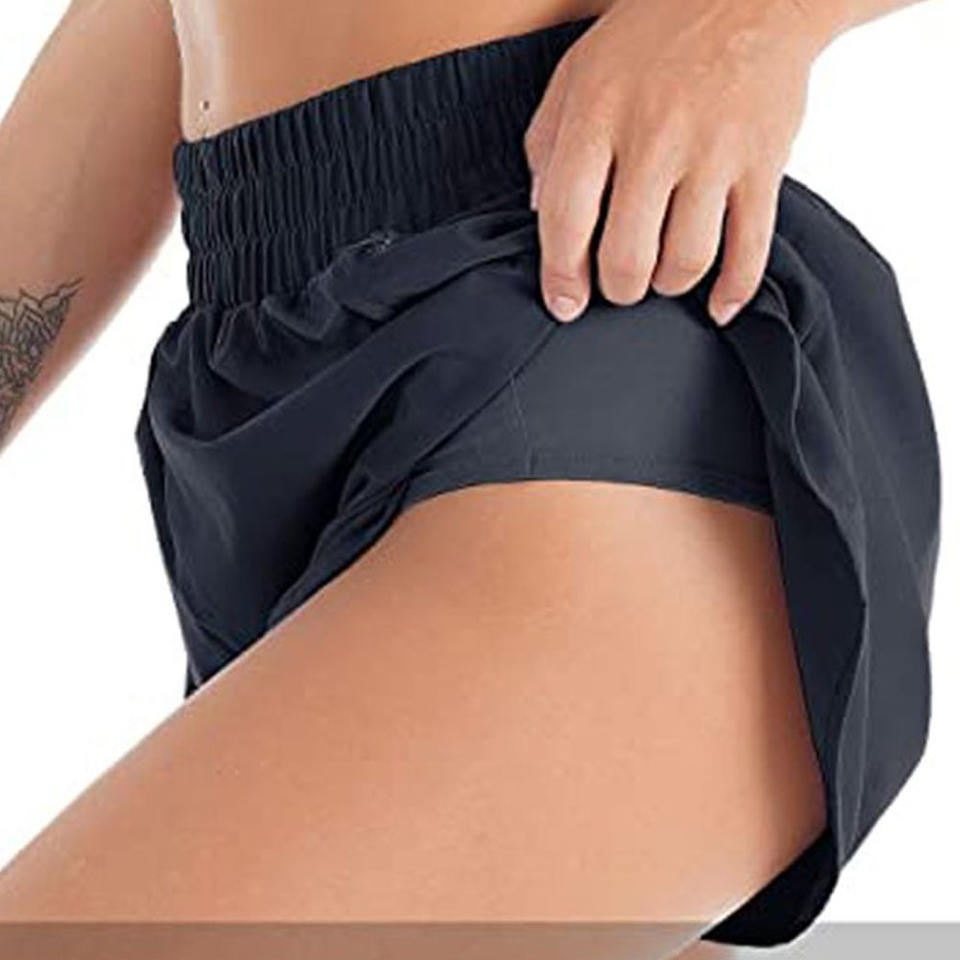 กางเกงขาสั้นกีฬาสีดำของผู้หญิงกางเกงขาสั้นแต่งลายผ้าโพลีเอสเตอร์และสแปนเด็กซ์ผ้าตาข่ายมีขนาด M/L