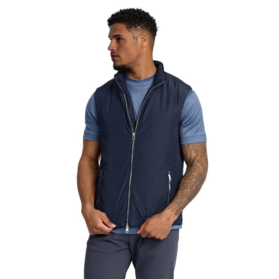เสื้อนอกรัดรูปให้ความอบอุ่นแบบลำลองสำหรับผู้ชายเสื้อแขนกุดกลับด้านได้โลโก้ตามสั่ง