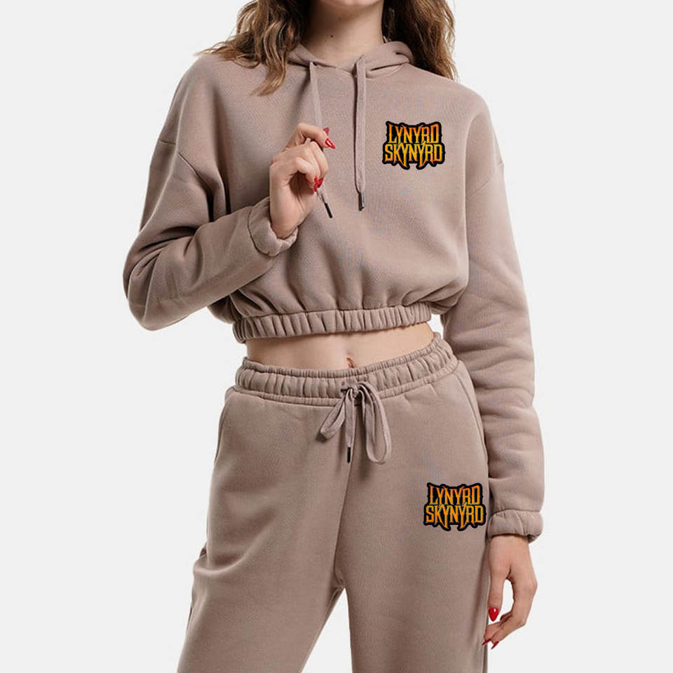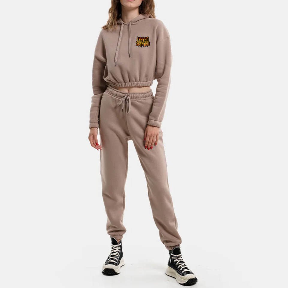 ชุดเซ็ต 2 ชิ้น เสื้อครอปซิปและกางเกงขายาวผ้าฝ้ายคุณภาพสูง 100% สำหรับผู้หญิง สไตล์สตรีทแวร์ รับสกรีนโลโก้ ขายส่งแฟชั่น
