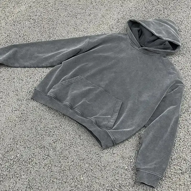เสื้อฮู้ดดี้ผู้ชายสไตล์วินเทจ ล้างสีแบบแอซิด ดีไซน์กระเป๋า ทรงปกติ ผ้าฟลีซ คุณภาพสูง เป็นมิตรกับสิ่งแวดล้อม สำหรับฤดูหนาว รับผลิตจำนวนมาก พร้อมสกรีนโลโก้ตามสั่ง