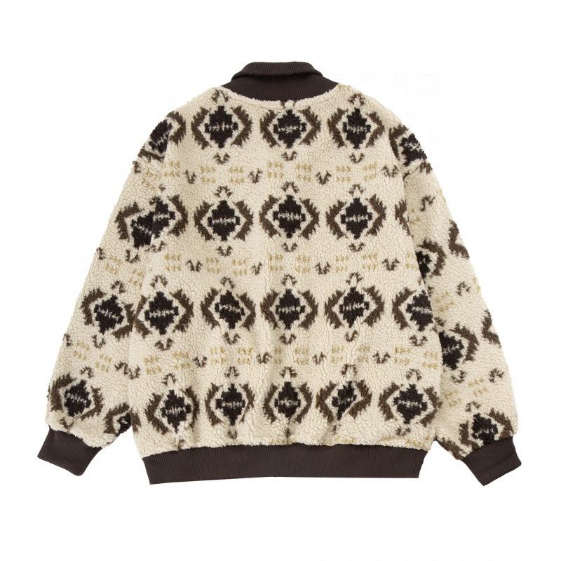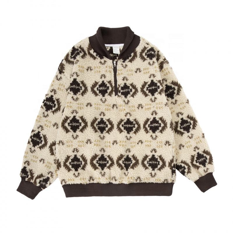 เสื้อสเวตเชิ้ตผู้ชายแบบซิป 1/4 ผ้าขนแกะโพลีเอสเตอร์คุณภาพสูง ลายแจ็คการ์ดแบบชาติพันธุ์ สำหรับฤดูหนาว รับผลิตตามสั่งพร้อมปักโลโก้