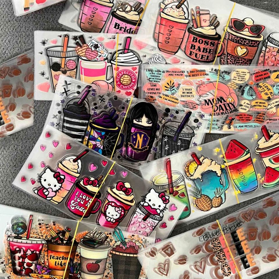 สติ๊กเกอร์พิมพ์ลายคุณภาพสูงแบบขายส่ง สำหรับแก้วน้ำ ขนาด 16 ออนซ์ ลาย UV DTF DFT DTV แบบกำหนดเองได้ สำหรับแก้วแก้วน้ำ