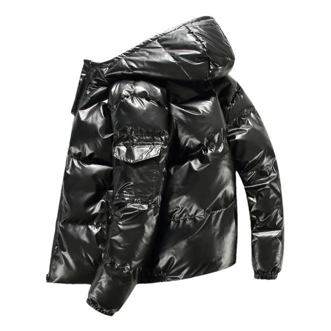 แจ็กเก็ตขนเป็ดมีฮู้ดของผู้ชายเสื้อโค้ทขนเป็ดมันวาวสำหรับฤดูหนาวขนาดพลัสไซส์