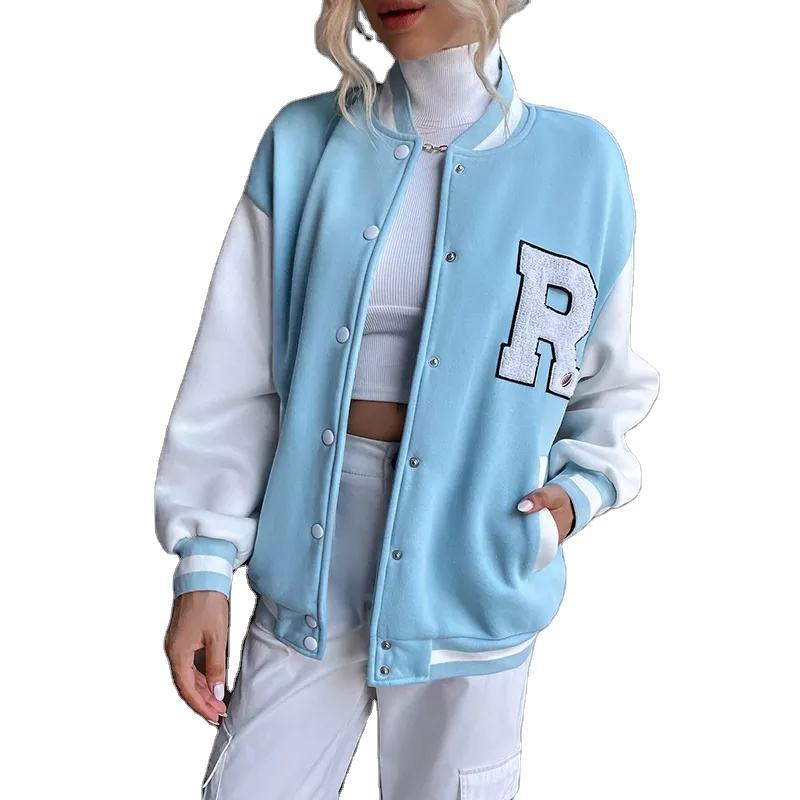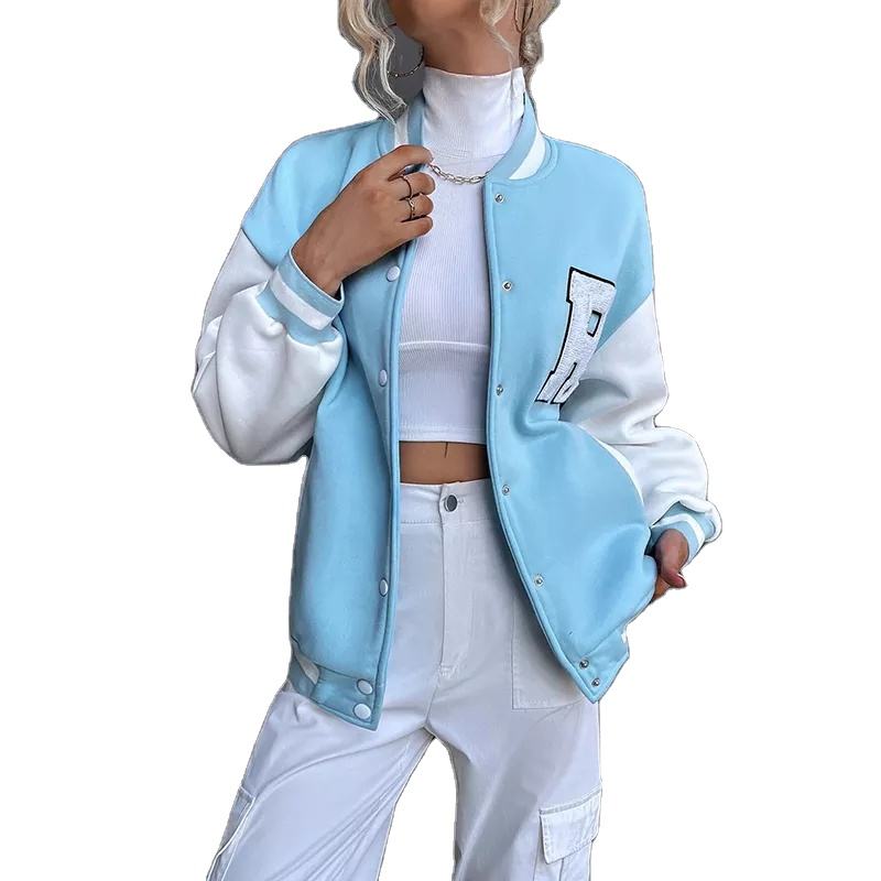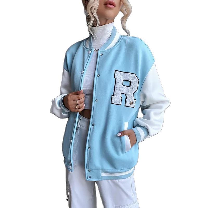 แจ็คเก็ตวาร์ซิตี้คุณภาพสูงสำหรับผู้หญิง ผลิตตามสั่ง พิมพ์ลายได้ กันน้ำ ระบายอากาศได้ดี ผ้าฝ้าย 100%