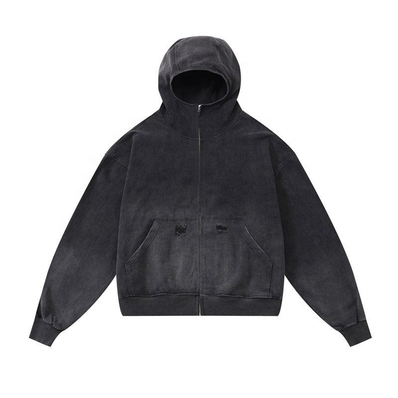 เสื้อแจ็กเก็ตมีฮู้ดผ้ายีนส์ไซส์ใหญ่พิเศษเสื้อสเวตเตอร์แบบรูดซิปสำหรับทุกเพศผู้ผลิตแฟชั่นลำลอง
