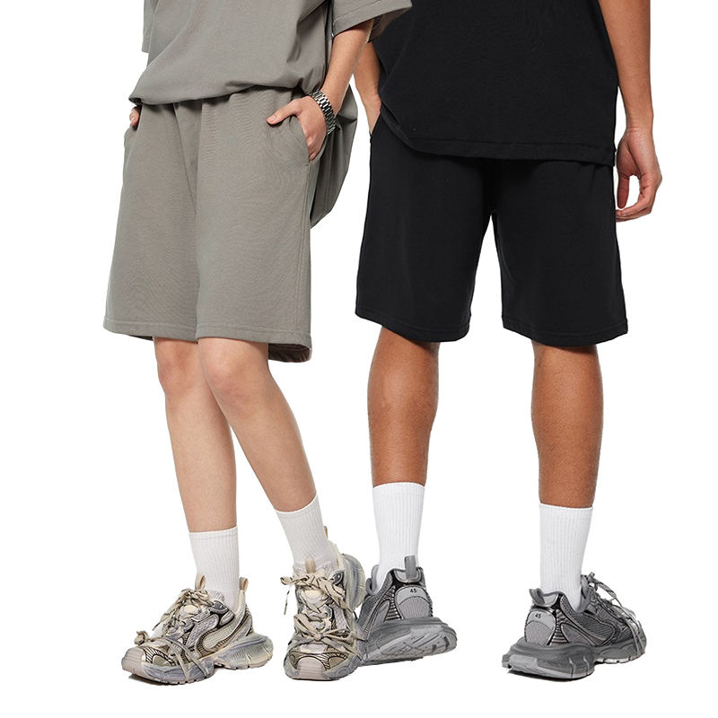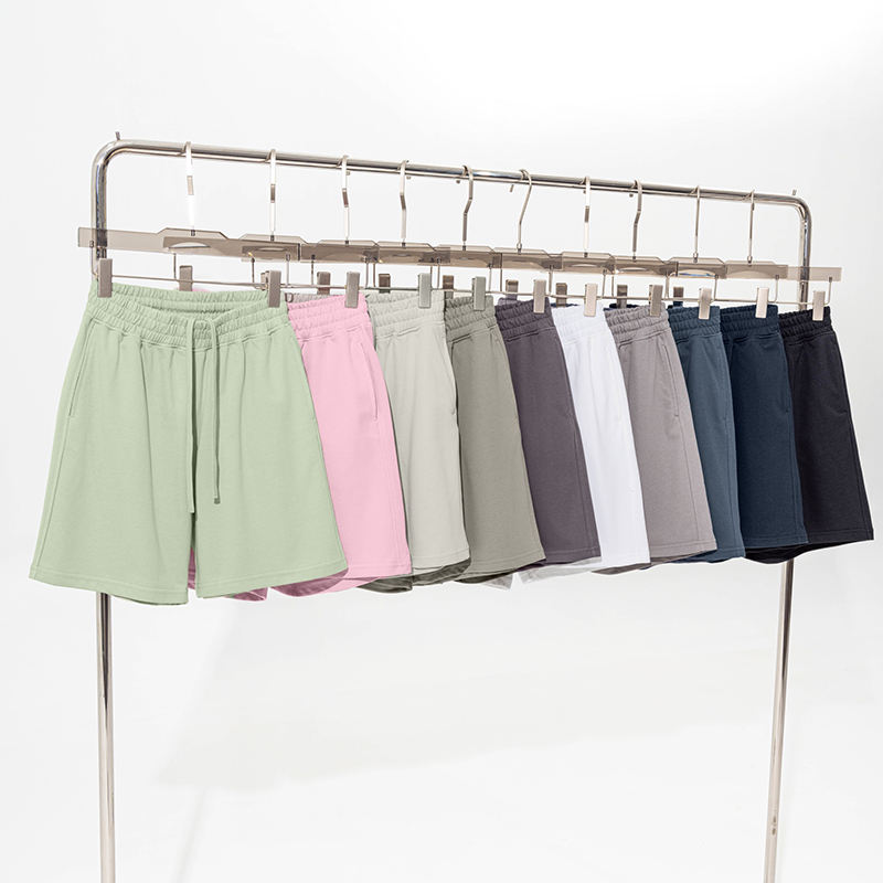 กางเกงขาสั้นออกกำลังกายผ้าเฟรนช์เทอร์รี่คุณภาพสูงขายส่ง กางเกงขาสั้นลำลองเอวกลางแบบมีเชือกผูกด้านหน้าสั่งทำได้