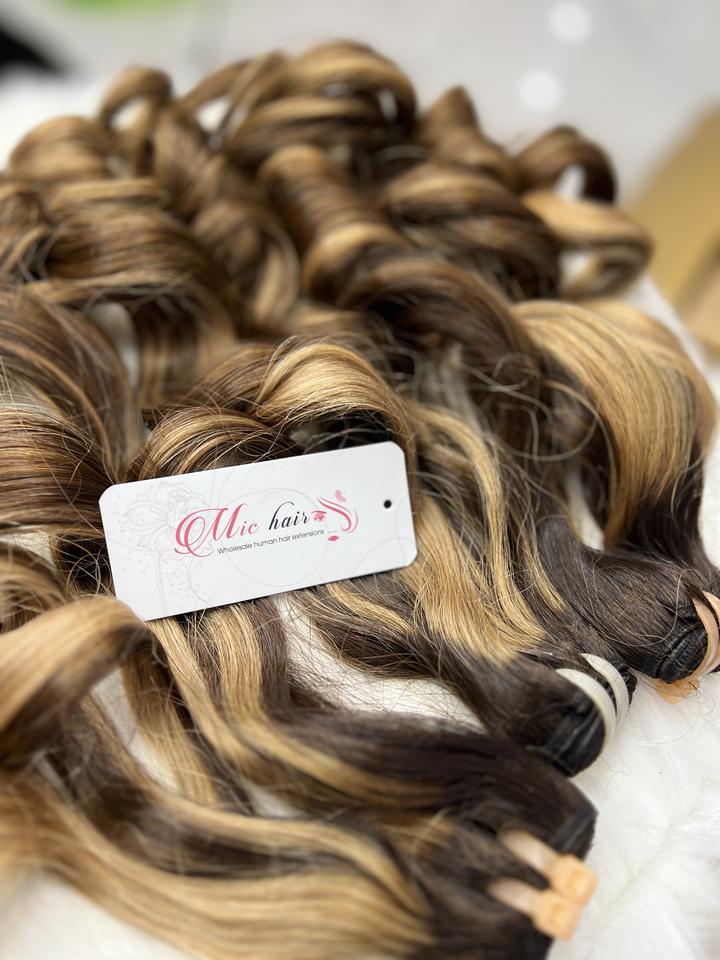 บริษัทขายส่งผมคุณภาพสูง FUMI Style ผมลอนเวียดนามแท้แบบเย็บสองชั้น น้ำหนัก 100 กรัม