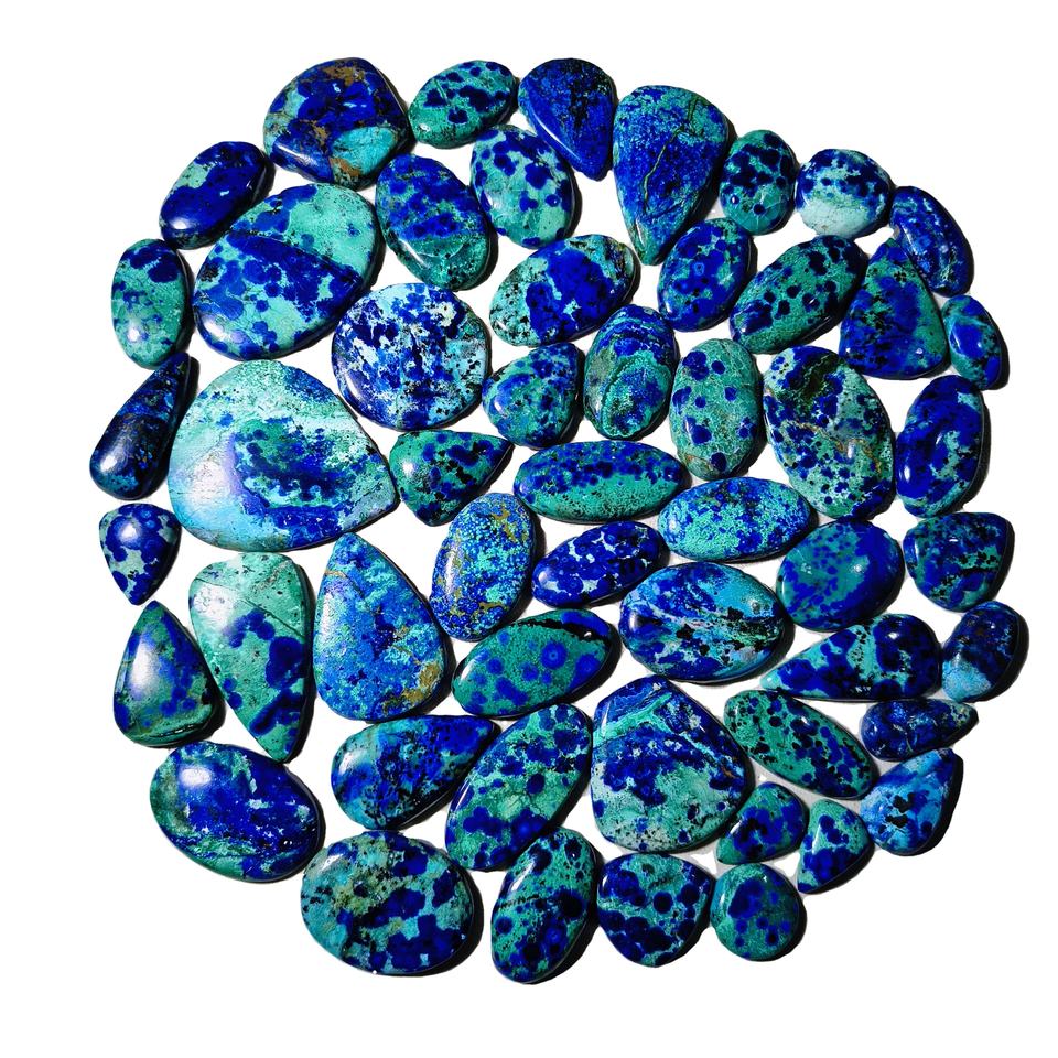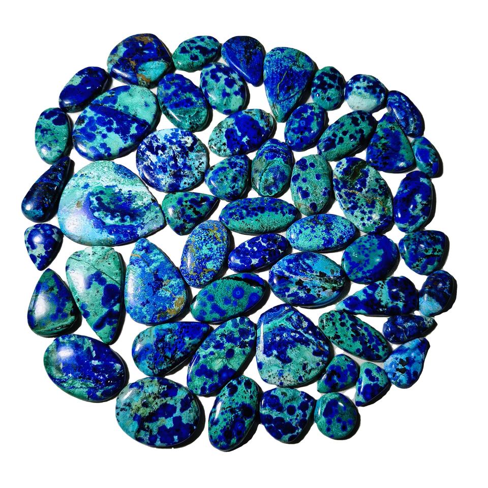 พลอยธรรมชาติคุณภาพสูง ขายส่งแบบคละขนาด คาโบชอง อะซูไรต์ บลูเบิร์ด ล็อตใหม่ 20-45 มม. 8-12 กรัม