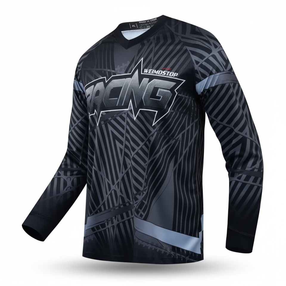 เสื้อขี่จักรยานออฟโรดพิมพ์ลายผ้าถ่ายเทความร้อนแห้งเร็วระบายอากาศเป็นมิตรกับสิ่งแวดล้อม
