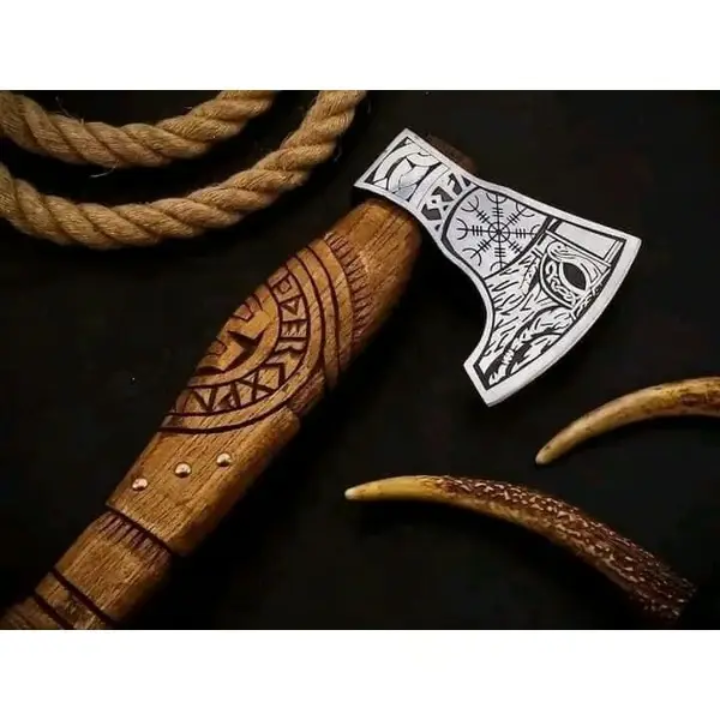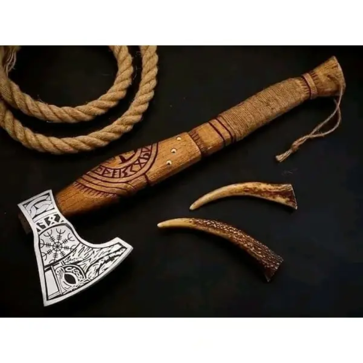 หัวเหล็กกล้าคาร์บอนสูงคุณภาพสูงพร้อมด้ามไม้กุหลาบและแผ่นหนังและปลอกจับ