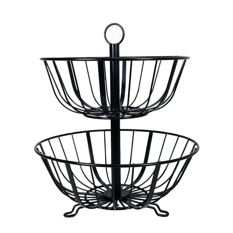 ตะกร้าผลไม้ 2 ชั้น ทำจากเหล็ก ดีไซน์ทันสมัย เป็นมิตรกับสิ่งแวดล้อม คุณภาพสูง ขายส่งจากอินเดีย ผลิตจากลวดโลหะสีดำอเนกประสงค์
