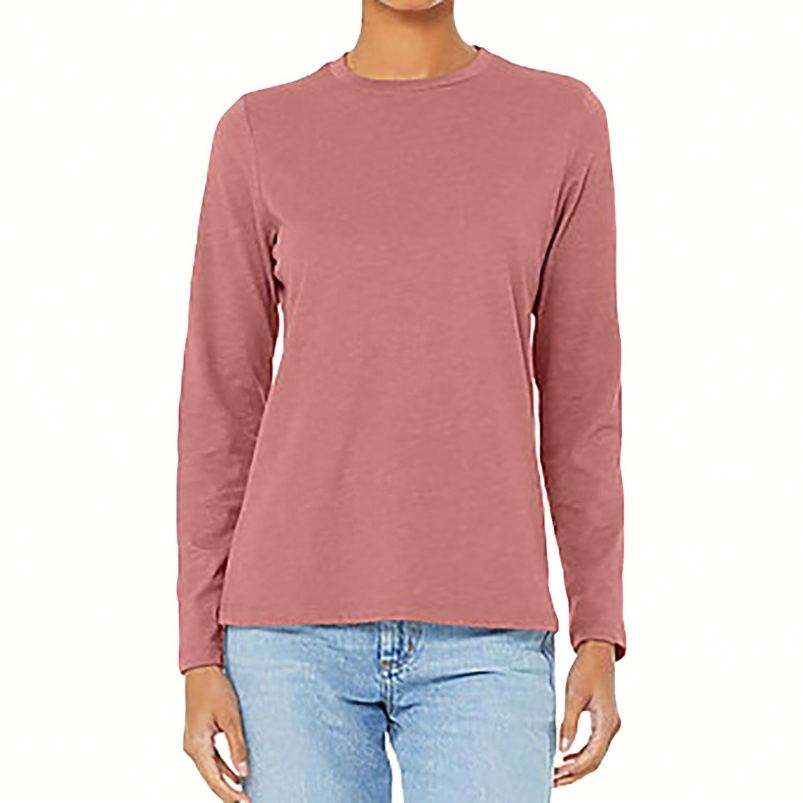 เสื้อยืดคอกลมแขนยาวผ้าฝ้าย100% สำหรับผู้หญิงเสื้อยืดปักโลโก้ลำลอง
