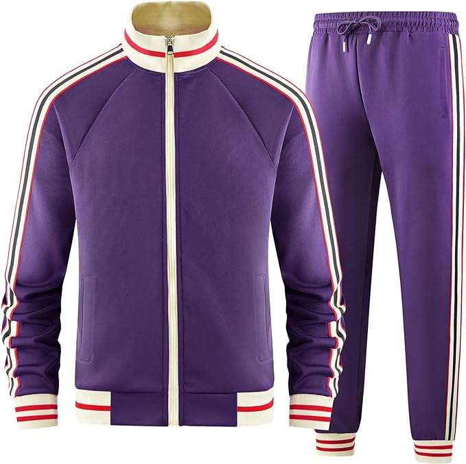 ชุดสูทสำหรับผู้ชายชุดวอร์มแขนยาวซิปเต็มตัวพร้อมแจ็กเก็ตและกางเกงชุด2ชิ้น