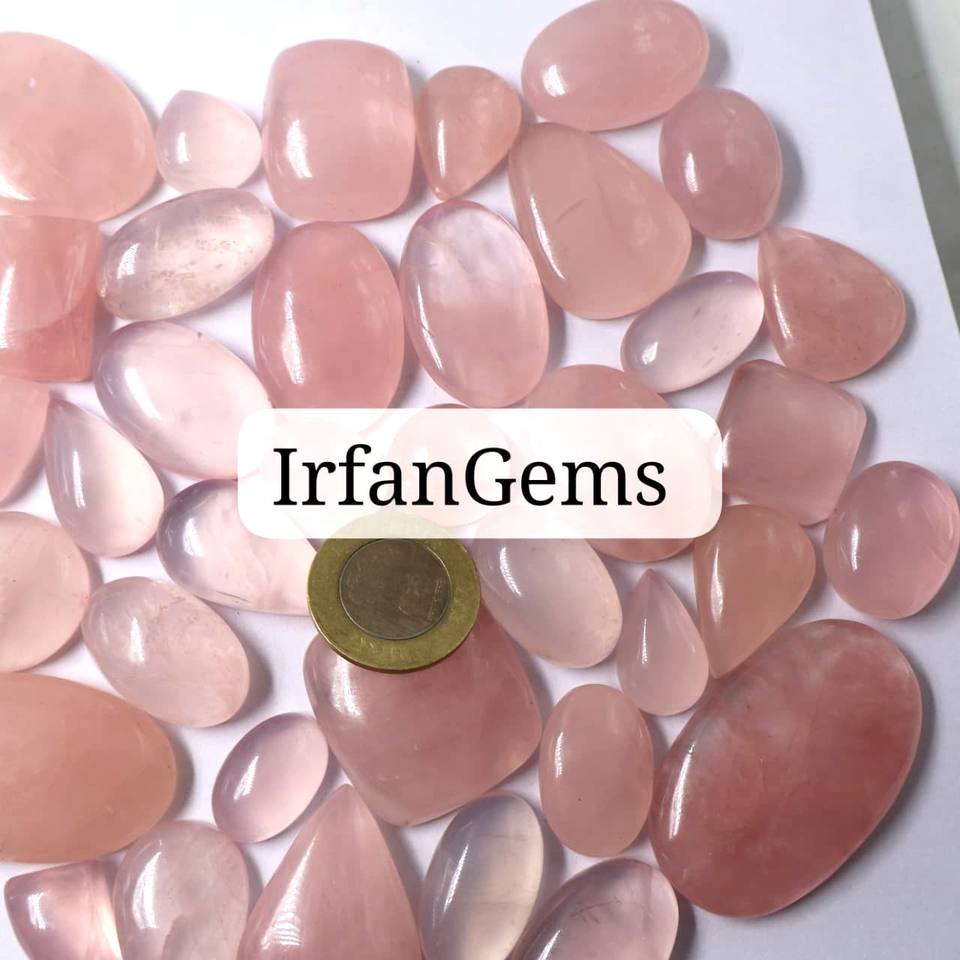 หินควอตซ์บำบัดพลังงานธรรมชาติรูปทรงผสมโรสควอตซ์เครื่องประดับอัญมณีหลวมทรงหลังเบี้ยเรียบ