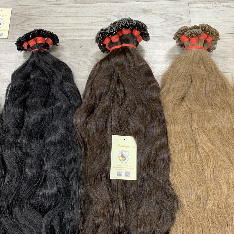 ผมต่อผมมนุษย์จากเวียดนามปลายแบนเคราตินบริสุทธิ์สีบลอนด์เป็นลอนธรรมชาติ