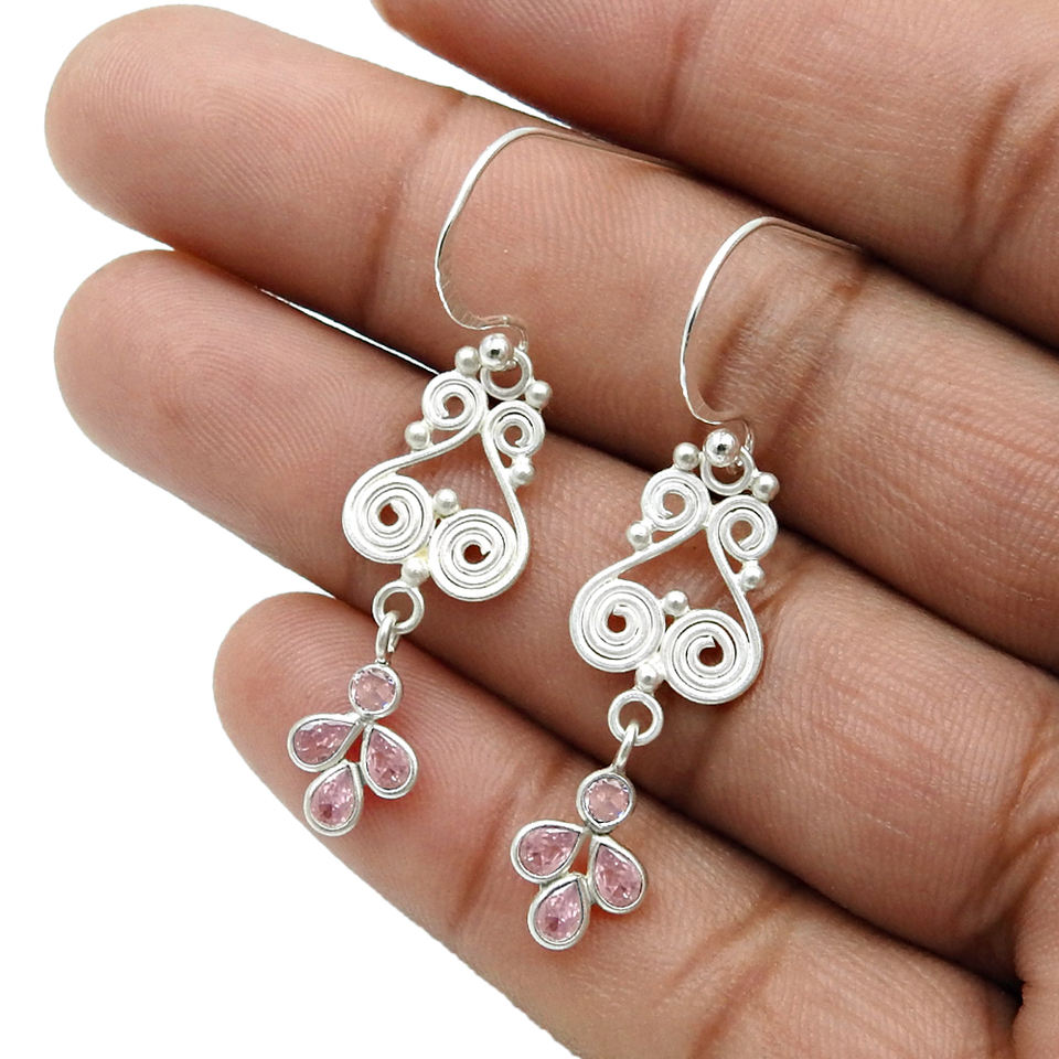 คุณภาพสูงขายส่งราคา925เงินสเตอร์ลิงสีชมพูลูกบาศก์เซอร์โคเนียช่างฝีมือต่างหูชาติพันธุ์เครื่องประดับแฮนด์เมดโบฮีเมียนอินเดีย