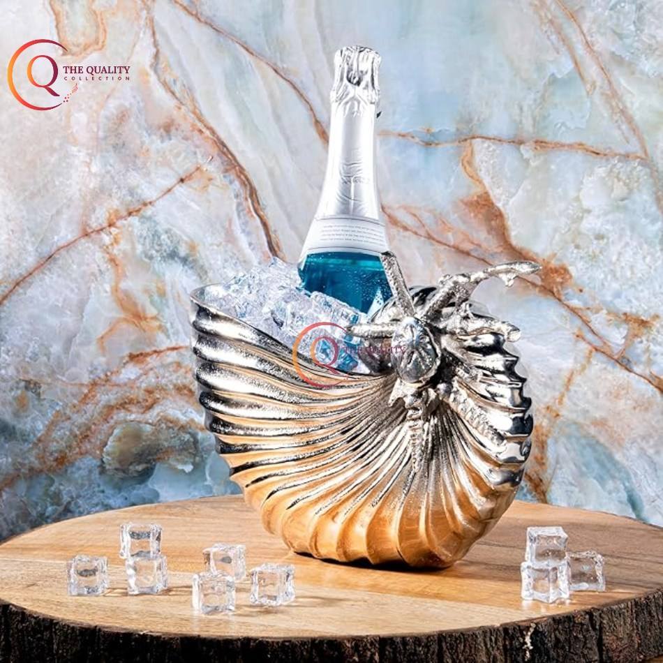 ถังน้ำแข็งเก็บความเย็นไวน์สีเงินแบบสั่งทำหรูหราเหนือกาลเวลาด้วยโลหะที่ทนทาน