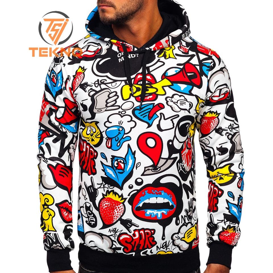 เสื้อฮู้ดสำหรับผู้ชายพิมพ์ลายซับลิเมชันโพลีเอสเตอร์แบบสวมหัวทรงโอเวอร์ไซส์3D พิมพ์ลาย
