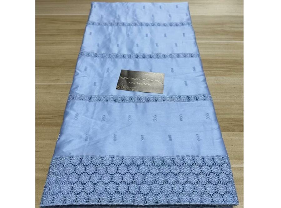 ผ้าลูกไม้โพลีเอสเตอร์/คอตตอนคุณภาพสูง ราคาขายส่ง ลายปักฉลุสีน้ำเงิน ผ้าลูกไม้โปแลนด์ ยาว 5 หลา