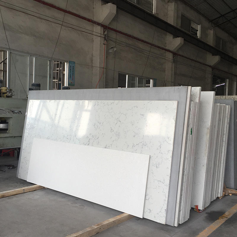 แผ่นหินควอตซ์เทียมคุณภาพสูงราคาส่ง แผ่นหินแกรนิตคาร์ราราแบบปรับปรุงสำหรับเคาน์เตอร์ครัว