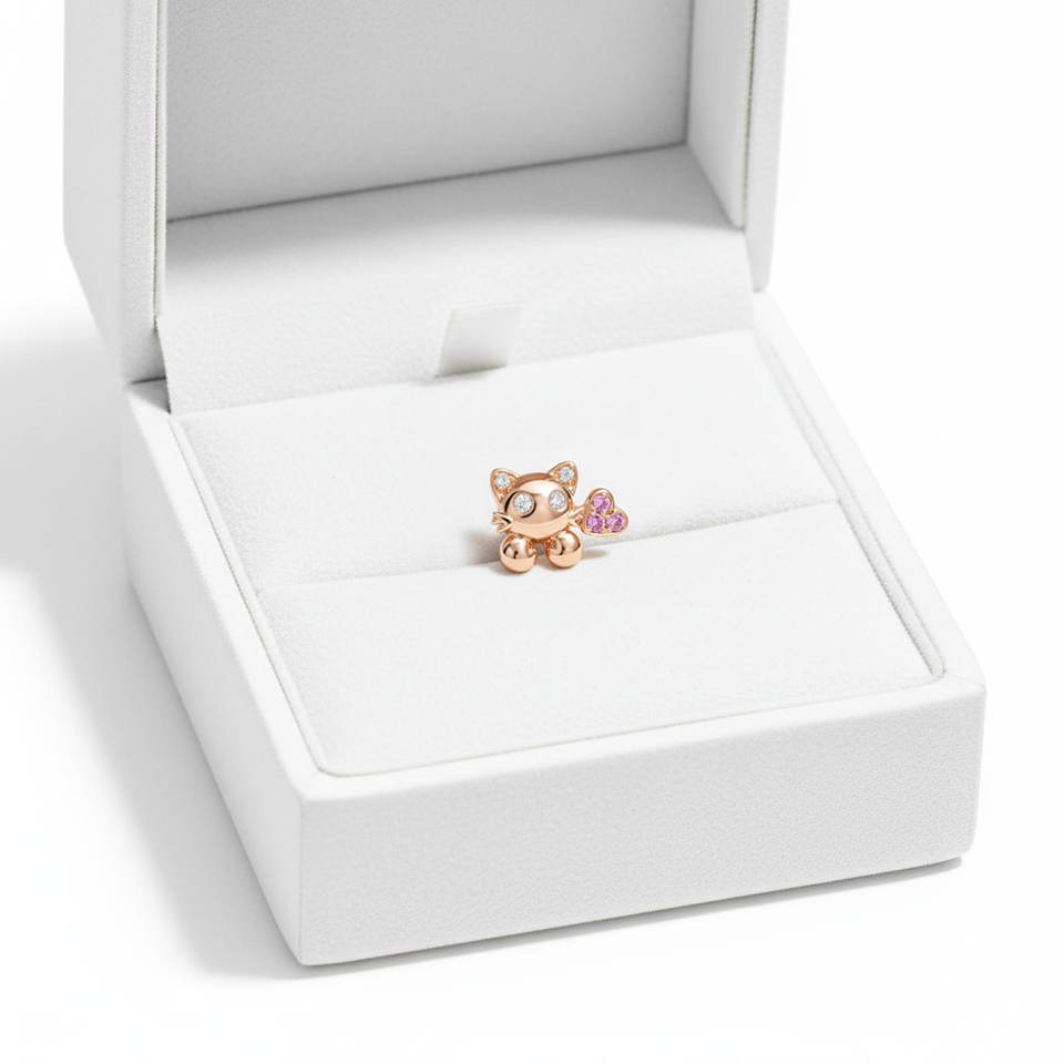 ต่างหูแบบติดหูเดี่ยว ดีไซน์หัวแมวน่ารักสุดๆ คุณภาพสูง ขายส่ง ทองคำขาว 18K ประดับเพชรธรรมชาติและพลอยสีชมพู